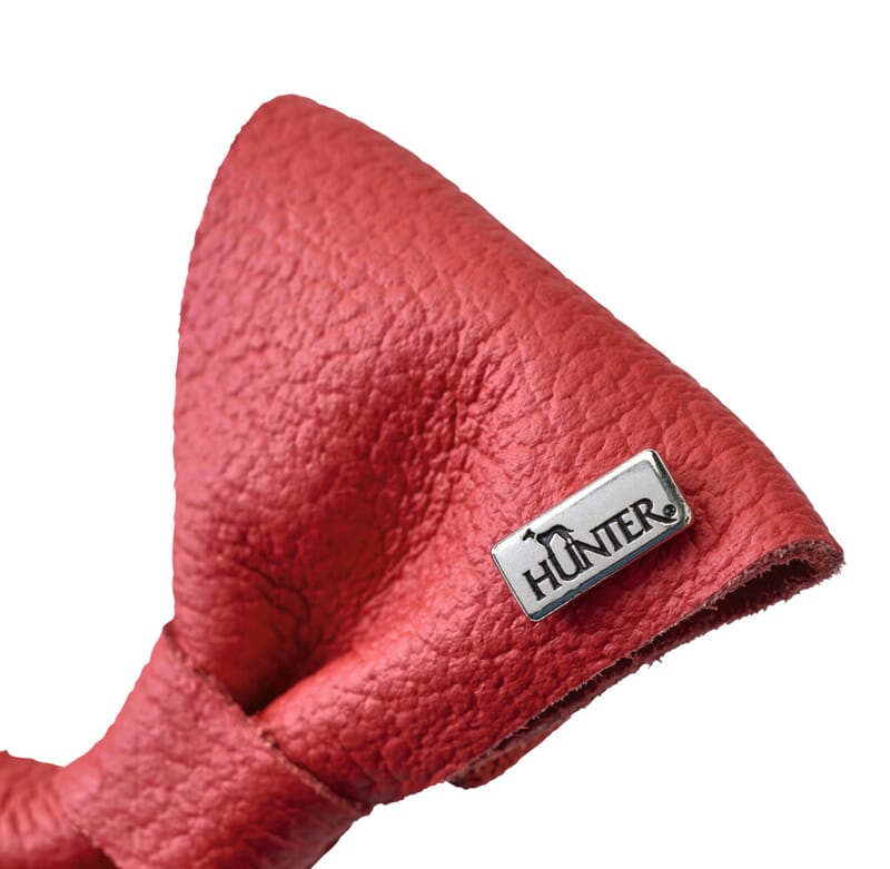 Å pynte seg og pynte seg til en spesiell anledning – noen ganger er det et must! Til jul, store familiefeiringer eller en spesiell bursdag kan den håndlagde sløyfen PARIS enkelt tres over halsbåndet til den firbeinte vennen, og den er perfekt antrukket for enhver form for feiring. Den dekorative halssløyfen PARIS, laget av nappaslær av fineste kvalitet, skinner i en rik, festlig rødfarge. Den gir en festlig karakter til hvert halsbånd fra HUNTER-serien med en bredde på 2–3,5 cm. To smale og to brede strikker på baksiden holder sløyfen pent på plass. Én ting er sikkert: Hunder med sløyfe i ekte lær vil aldri bli oversett, og kan med litt flaks til og med få en eller to ekstra godbiter på festlighetene ...