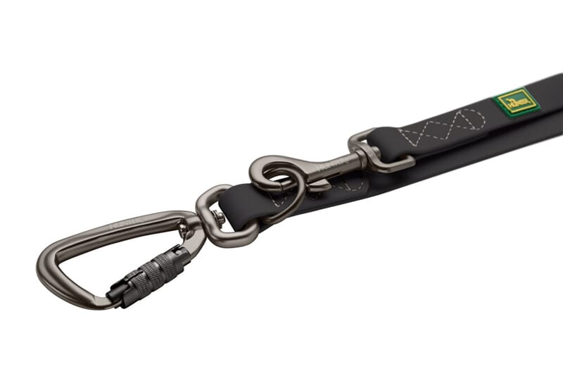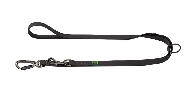 Det justerbare leiebåndet Havanna kombinerer funksjonalitet og design av tilbehør av høy kvalitet. Laget av rivefast strukturert stoff med et beskyttende plastbelegg, imponerer det med eksepsjonell holdbarhet, enkelt vedlikehold og værbestandighet. Smuss og fuktighet kan enkelt tørkes av, noe som sikrer at båndet forblir pålitelig selv under krevende forhold. Takket være 3-veis justerbarheten kan lengden tilpasses individuelt- ideelt for ulike situasjoner som avslappede turer eller større kontroll i i travle miljøer. De robuste satengbehandlede beslagene i stilig stålgrått sikrer sikker håndtering og fremhever det elegante designet.