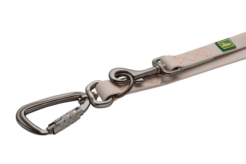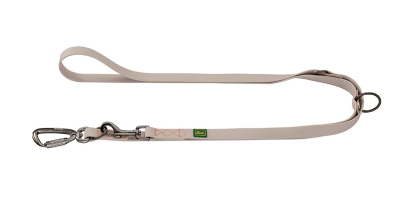 Det justerbare leiebåndet Havanna kombinerer funksjonalitet og design av tilbehør av høy kvalitet. Laget av rivefast strukturert stoff med et beskyttende plastbelegg, imponerer det med eksepsjonell holdbarhet, enkelt vedlikehold og værbestandighet. Smuss og fuktighet kan enkelt tørkes av, noe som sikrer at båndet forblir pålitelig selv under krevende forhold. Takket være 3-veis justerbarheten kan lengden tilpasses individuelt- ideelt for ulike situasjoner som avslappede turer eller større kontroll i i travle miljøer. De robuste satengbehandlede beslagene i stilig stålgrått sikrer sikker håndtering og fremhever det elegante designet.