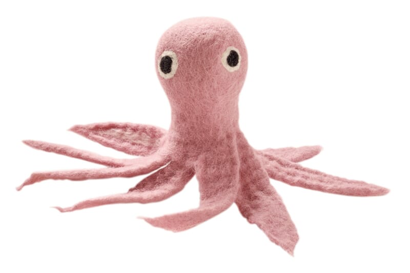 Den håndfiltede katteleken OCTI OTTO blekkspruten inviterer katter til gledelig lek og vill moro, med sitt slitesterke materiale som sikrer langvarig glede. Inspirert av sine vrikkete tentakler kan huskatter hengi seg til jaktinstinktene sine fullt ut med denne lekne følgesvennen. OCTI OTTO er laget av ullfilt, som er spesielt motstandsdyktig mot smuss og klør. Når den energiske lekeøkten er over, er OCTI OTTO også perfekt for kos. Leken kan vaskes ved 30 °C i en vaskepose. Etterpå ruller du den bare tilbake i form og lar den tørke på en radiator eller i solen.