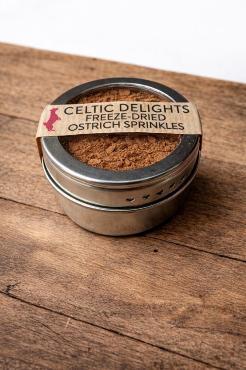 Kommer i en krydderboks, som gjør det enkelt å drysser over maten.